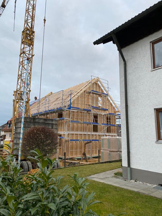 in Holzrahmenbauweise mit verputzter Fassade inklusiv Carport und Garagendachstuhl